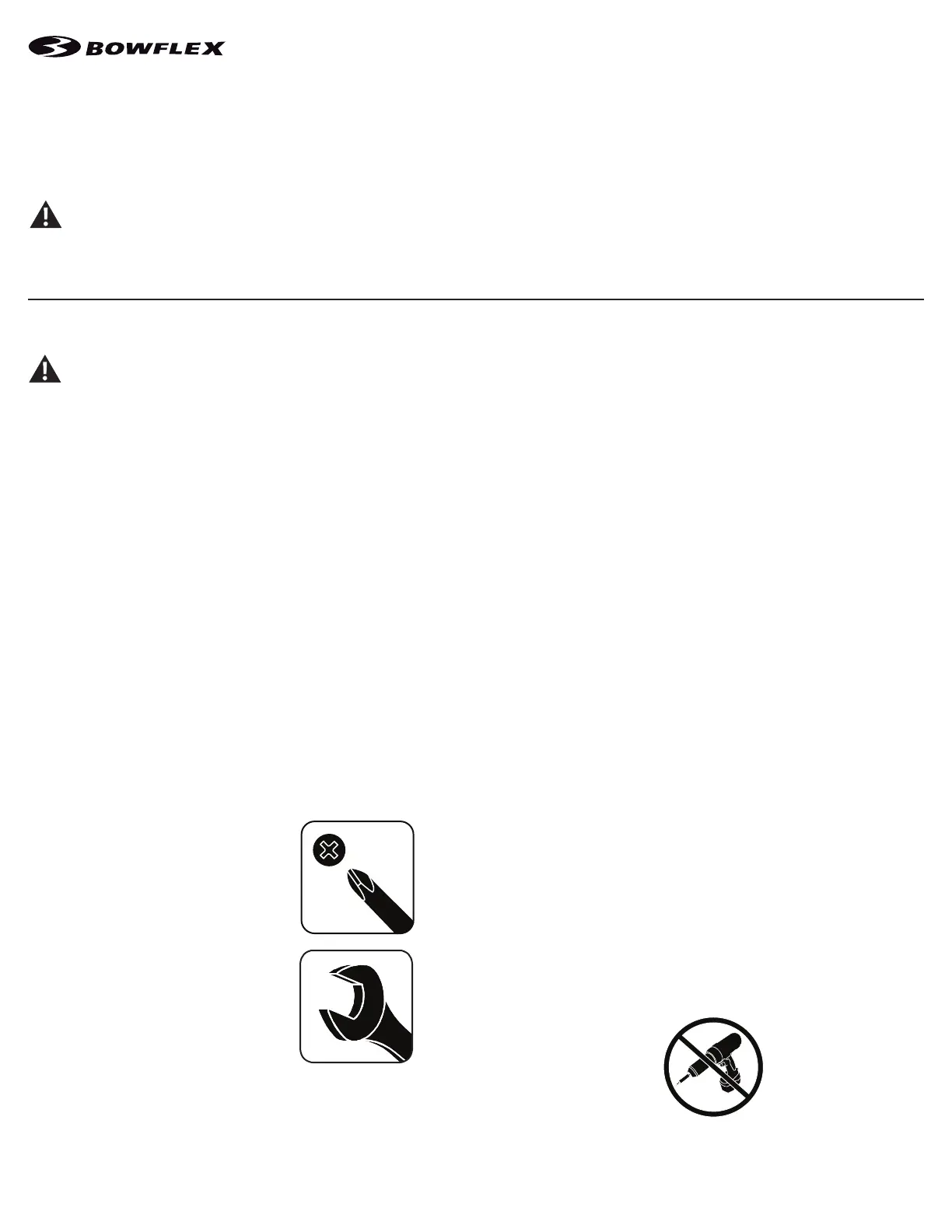 • If replacement parts are necessary, use only genuine Nautilus replacement parts and hardware. Failure to use genuine replacement parts can cause a