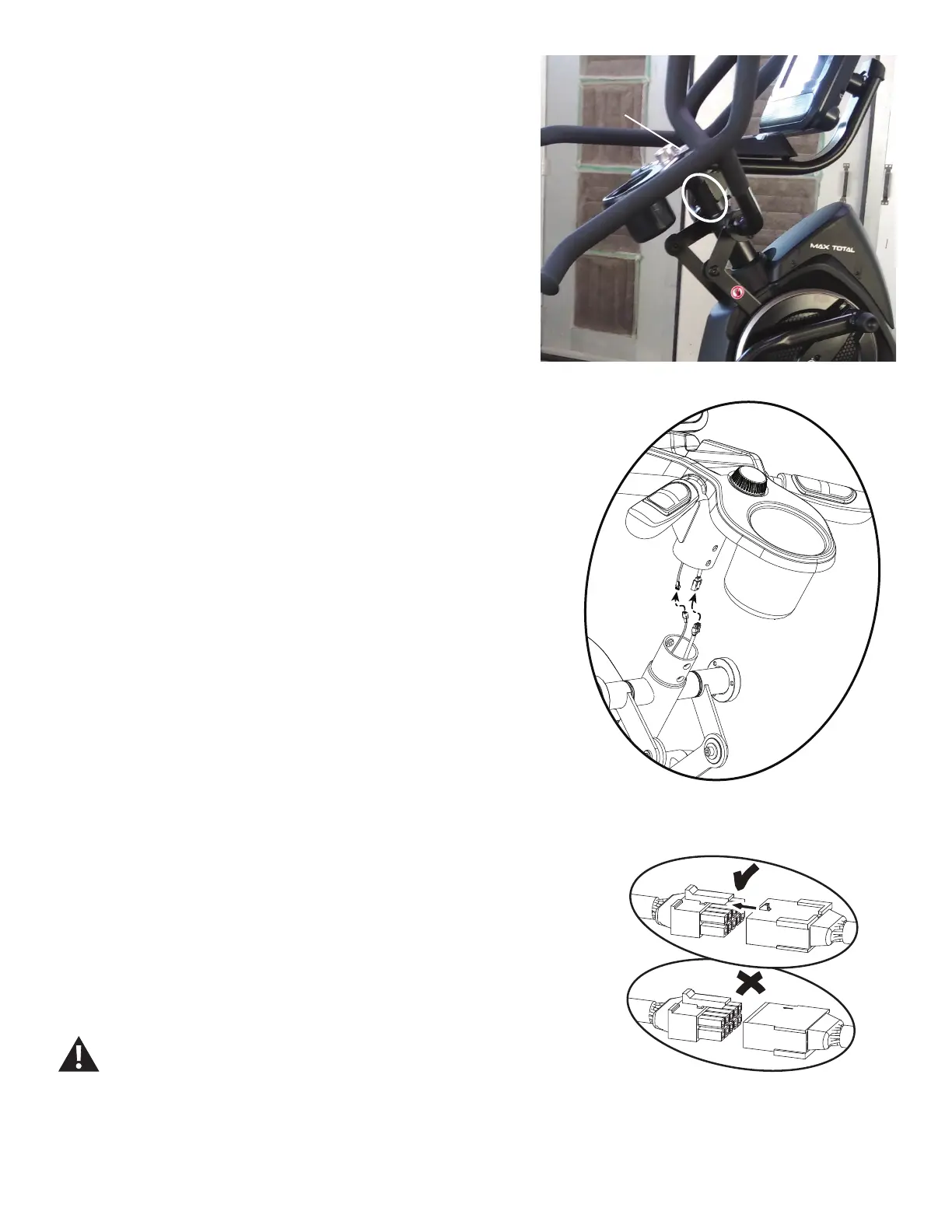 7. Carefully lift the Static Handlebar Assembly and expose the Cable Connec-