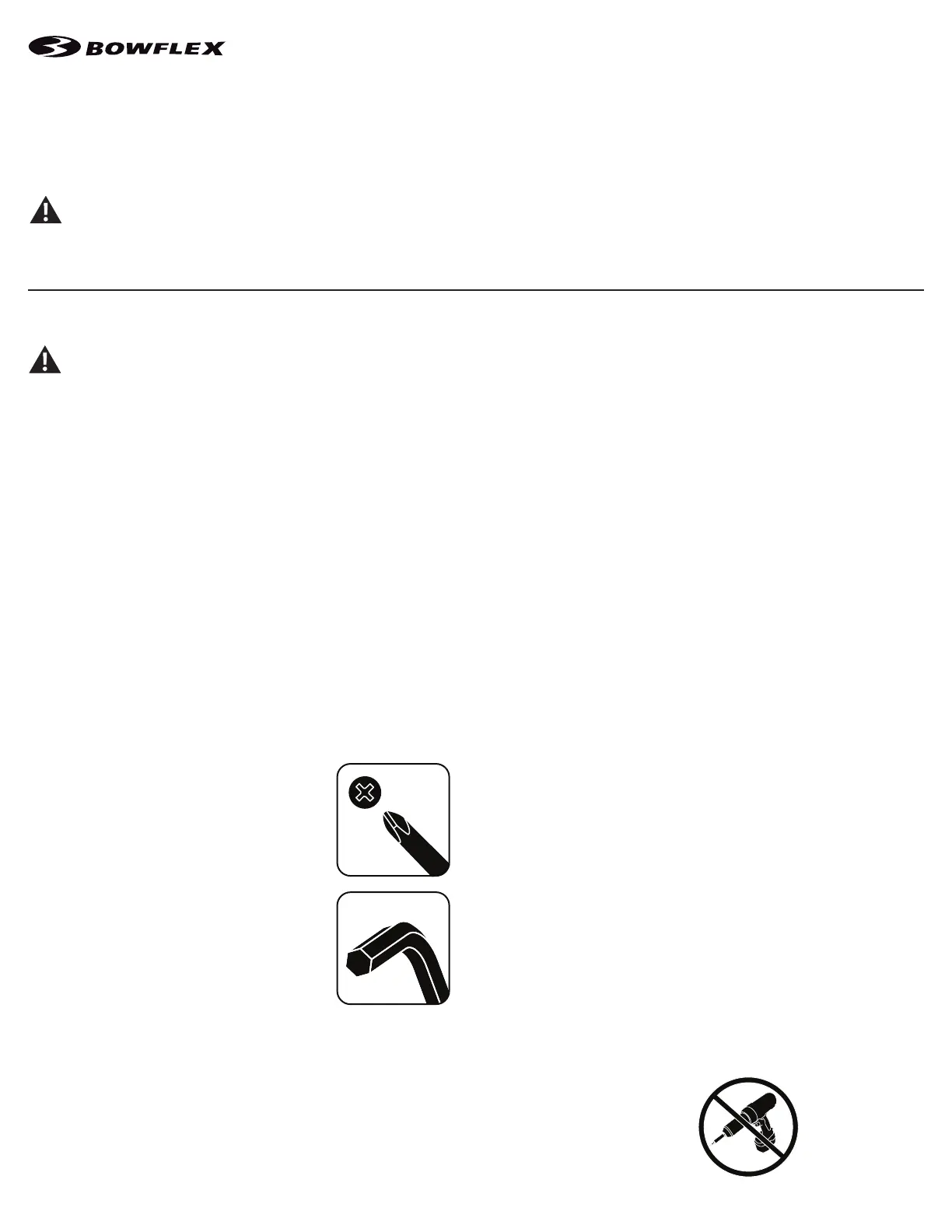 • If replacement parts are necessary, use only genuine Nautilus replacement parts and hardware. Failure to use genuine replacement parts can cause a