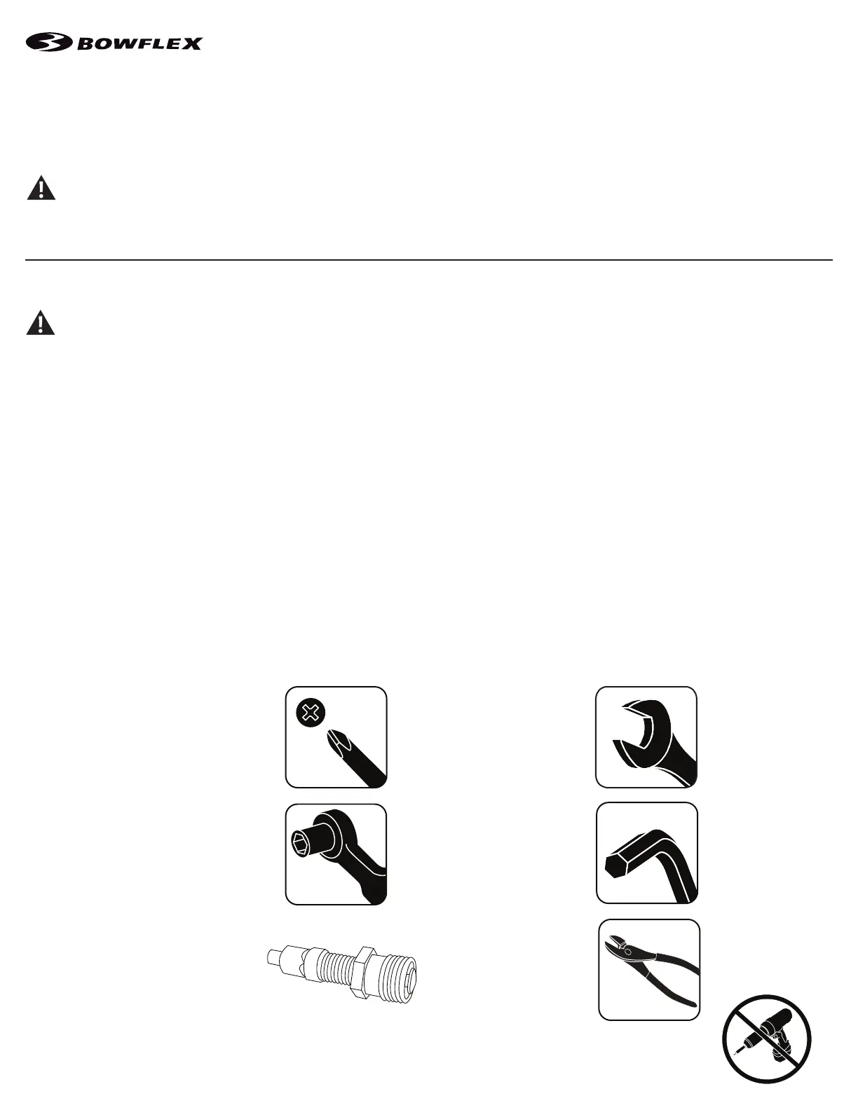 • If replacement parts are necessary, use only genuine Nautilus replacement parts and hardware. Failure to use genuine replacement parts can cause a