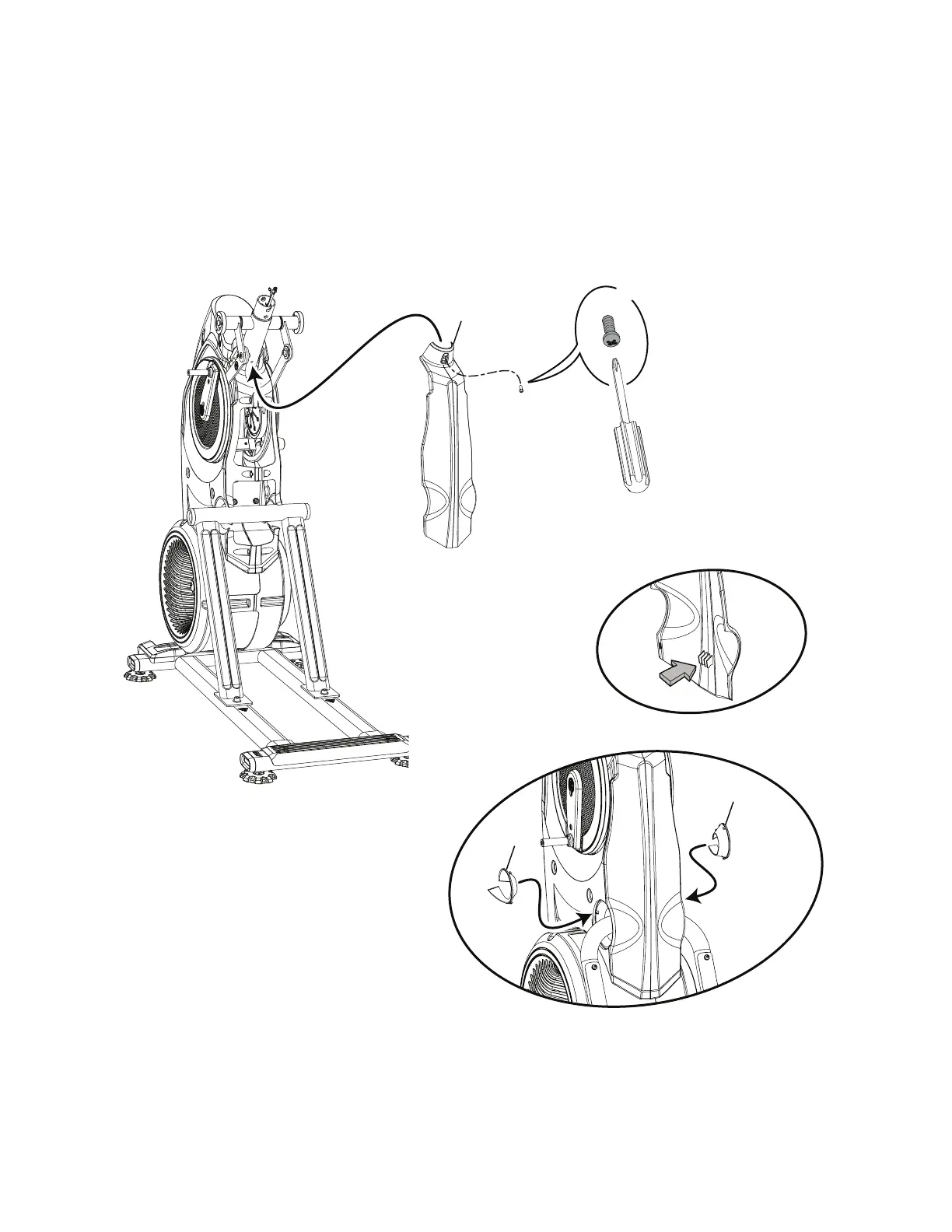 NOTICE: Place the inside hook of the Rear Shroud on the Frame Assembly and then pivot it up into place.