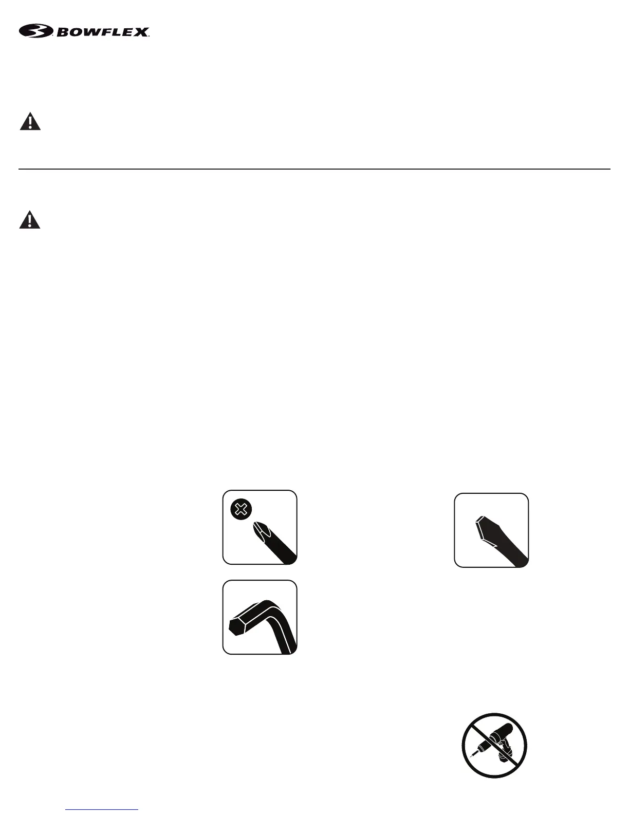 • If replacement parts are necessary, use only genuine Nautilus replacement parts and hardware. Failure to use genuine replacement parts can cause a
