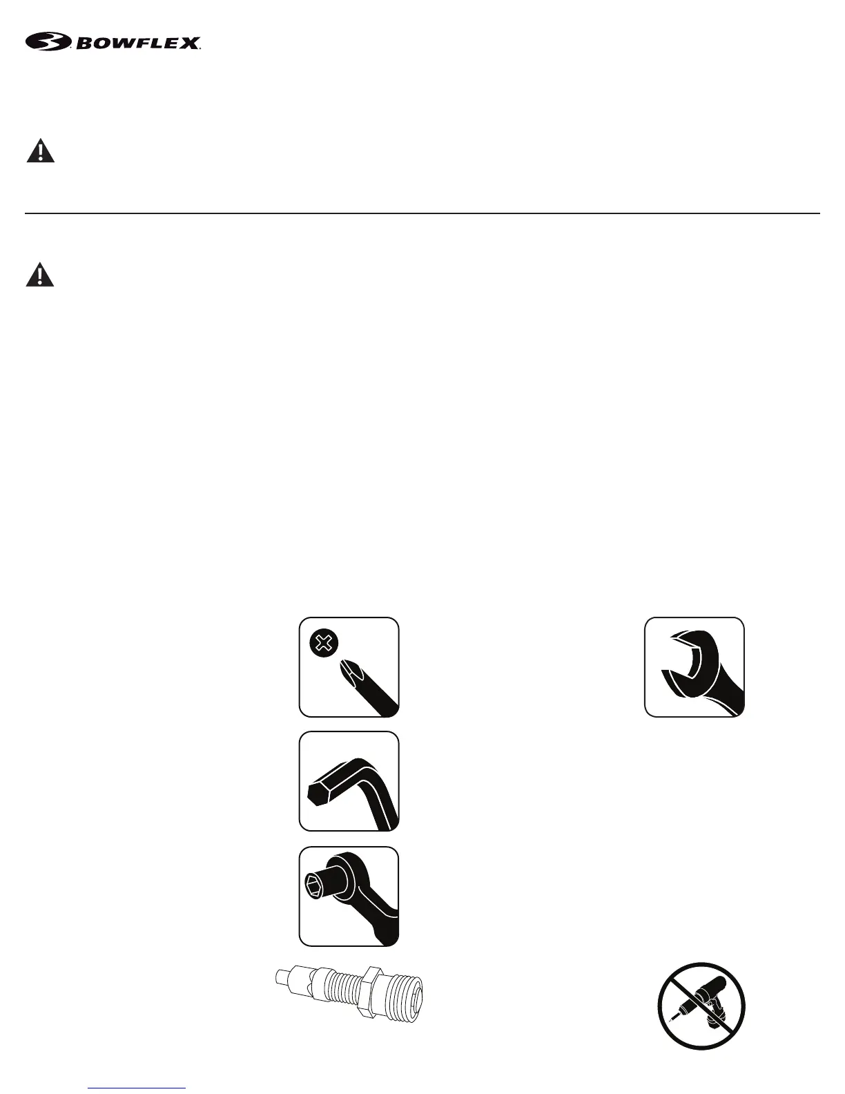 • If replacement parts are necessary, use only genuine Nautilus replacement parts and hardware. Failure to use genuine replacement parts can cause a