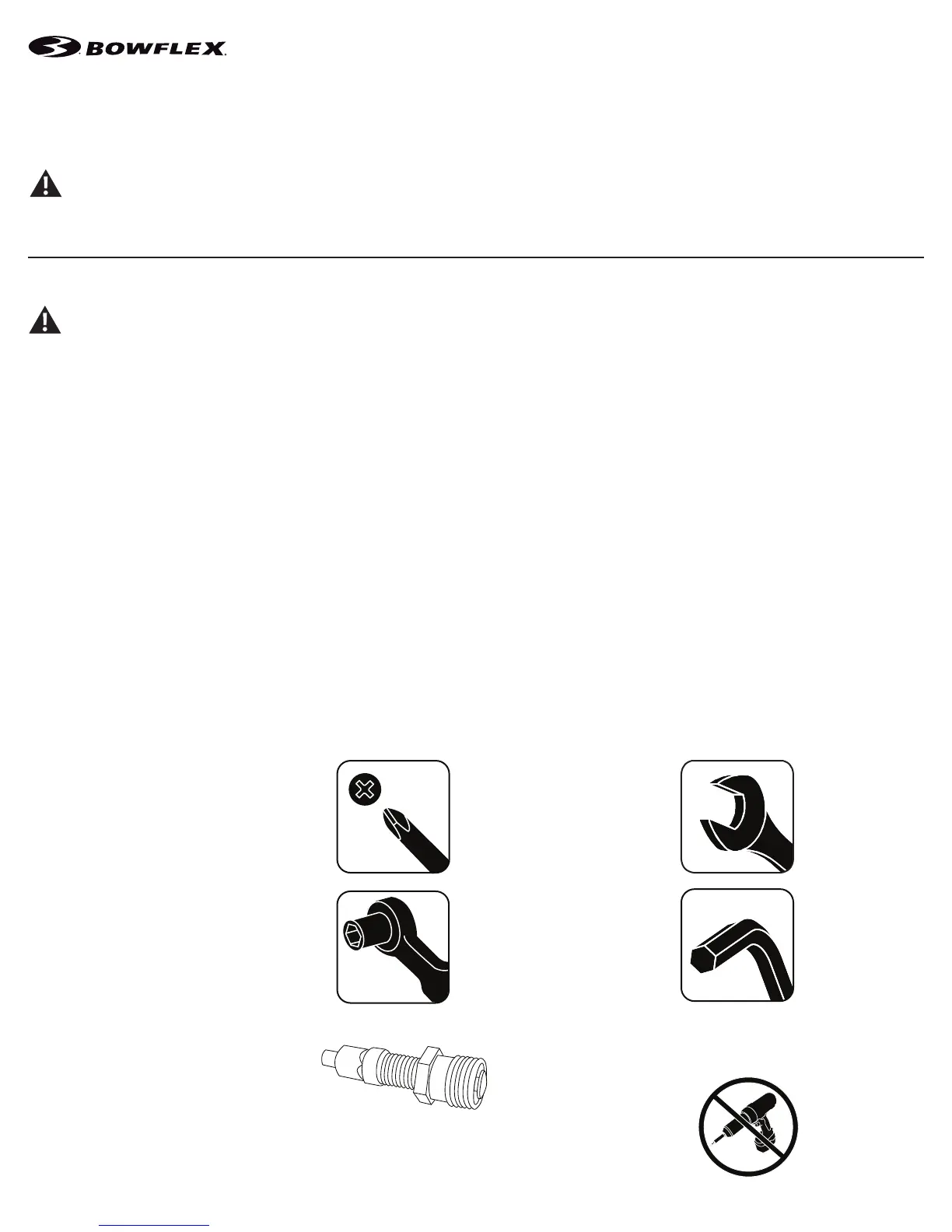 • If replacement parts are necessary, use only genuine Nautilus replacement parts and hardware. Failure to use genuine replacement parts can cause a