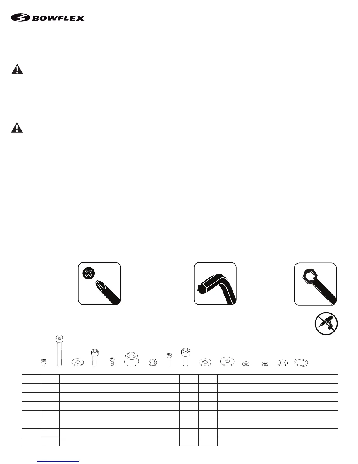 • If replacement parts are necessary, use only genuine Nautilus replacement parts and hardware. Failure to use genuine replacement parts can cause a