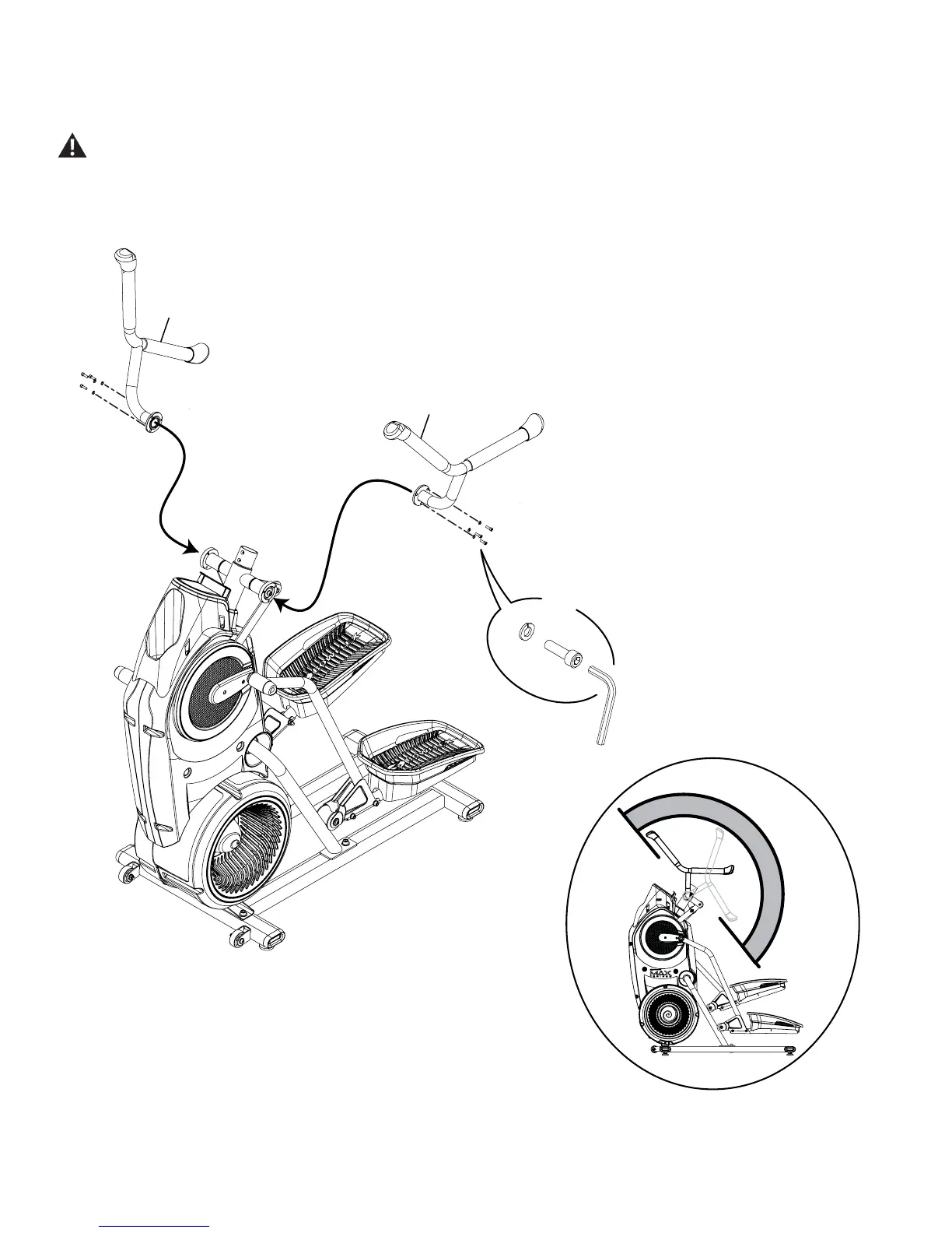 NOTICE: Be sure to attach the Upper Handlebars so they can be correctly grasped by a User when on the machine.