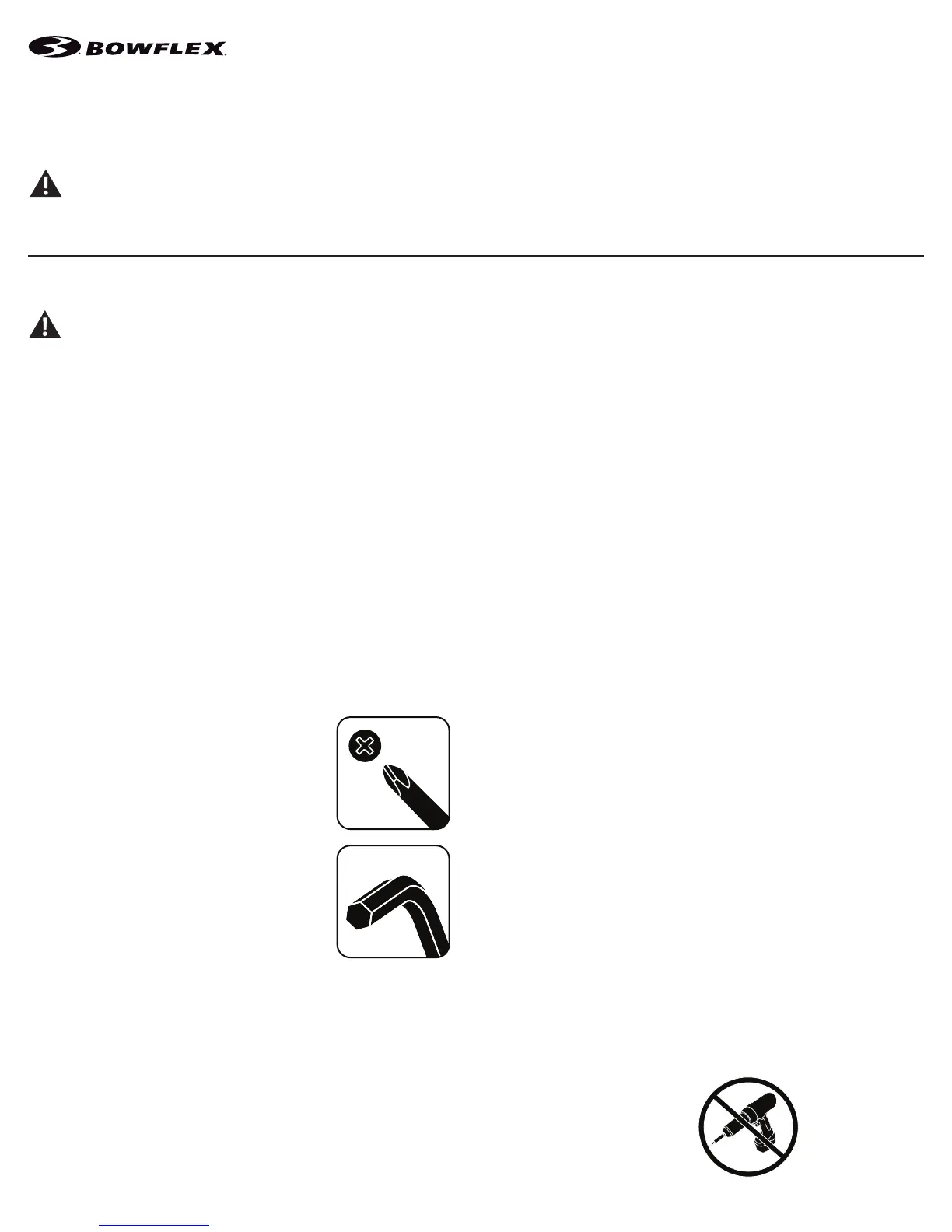 • If replacement parts are necessary, use only genuine Nautilus replacement parts and hardware. Failure to use genuine replacement parts can cause a