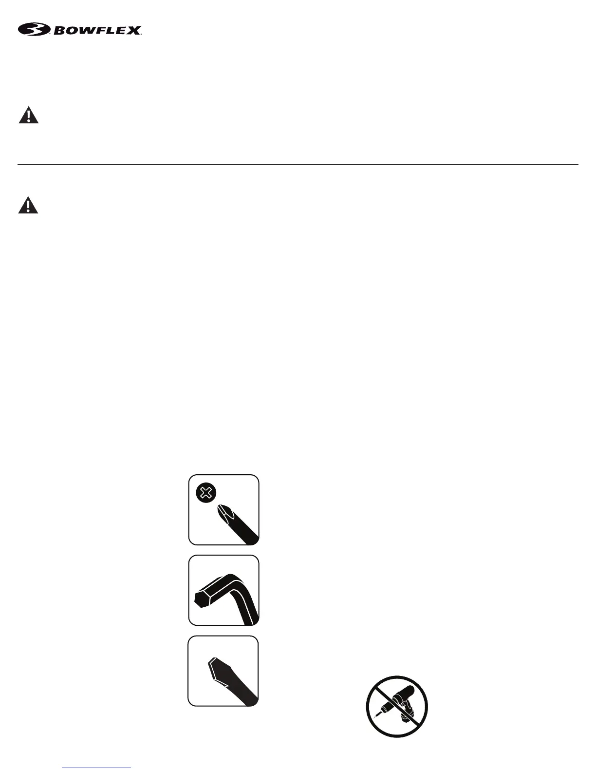 • If replacement parts are necessary, use only genuine Nautilus replacement parts and hardware. Failure to use genuine replacement parts can cause a