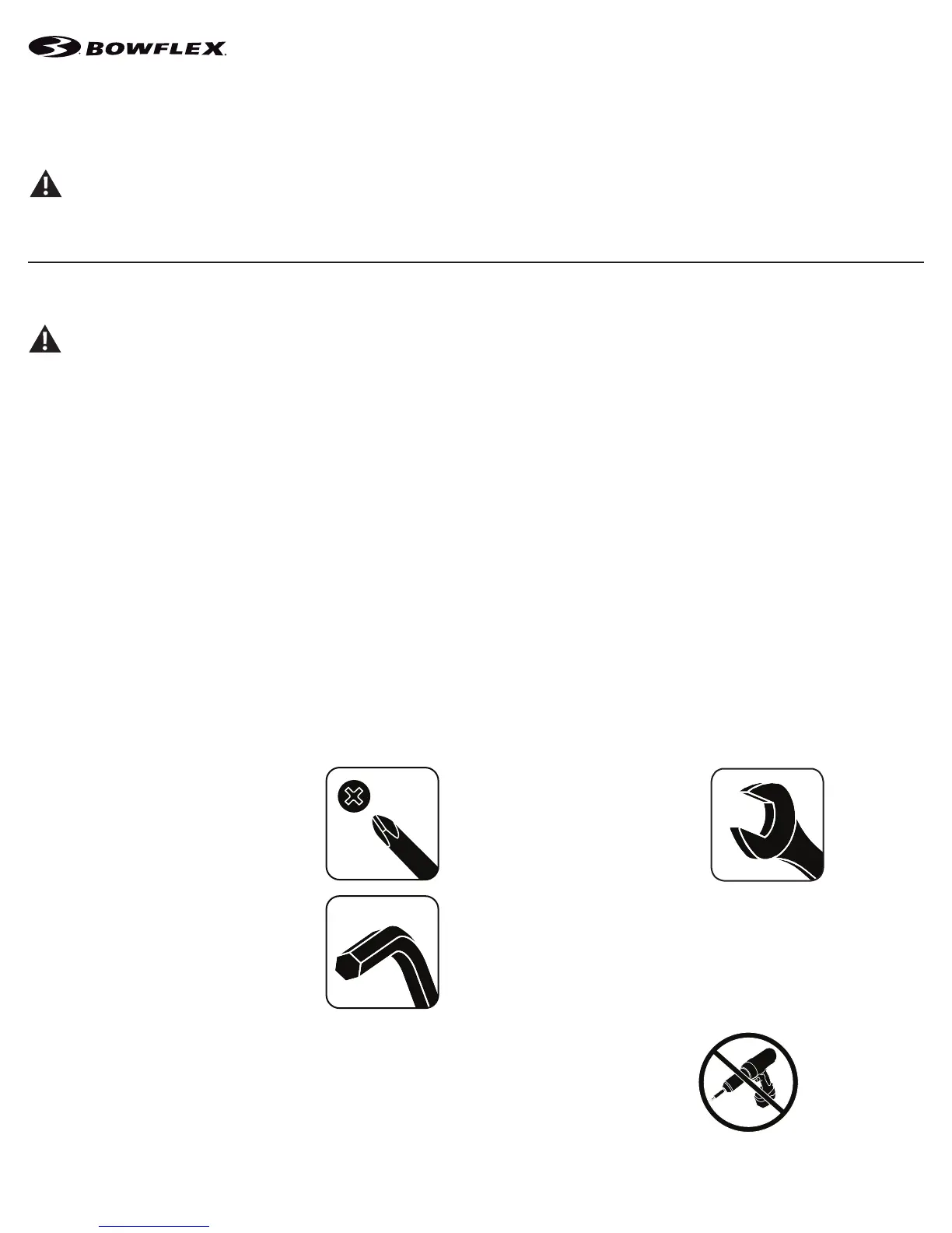 • If replacement parts are necessary, use only genuine Nautilus replacement parts and hardware. Failure to use genuine replacement parts can cause a