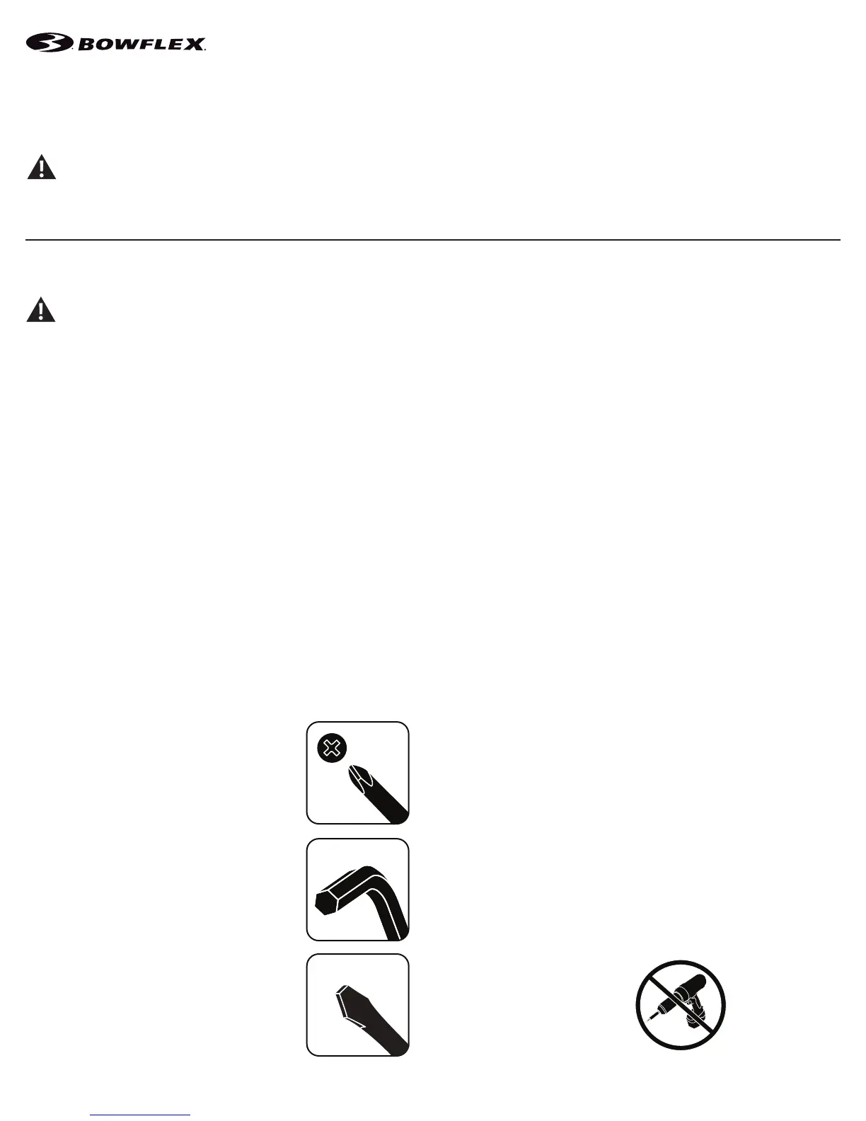 • If replacement parts are necessary, use only genuine Nautilus replacement parts and hardware. Failure to use genuine replacement parts can cause a