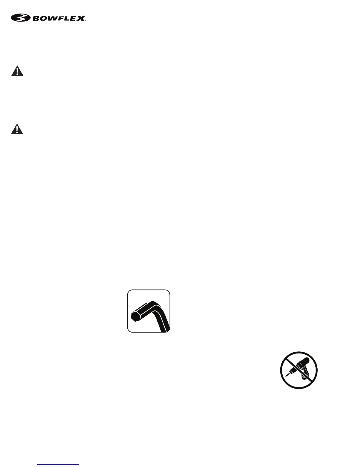 • If replacement parts are necessary, use only genuine Nautilus replacement parts and hardware. Failure to use genuine replacement parts can cause a