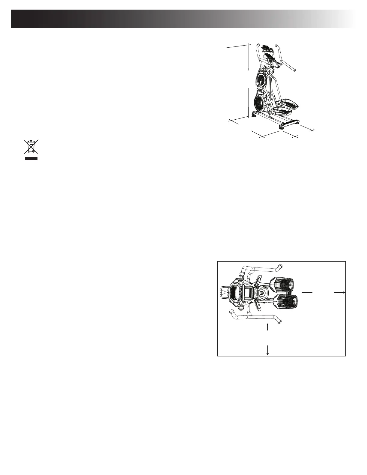 machine and to the rear of the machine. Be sure that the workout space you are utilizing has adequate height clearance, taking into consideration