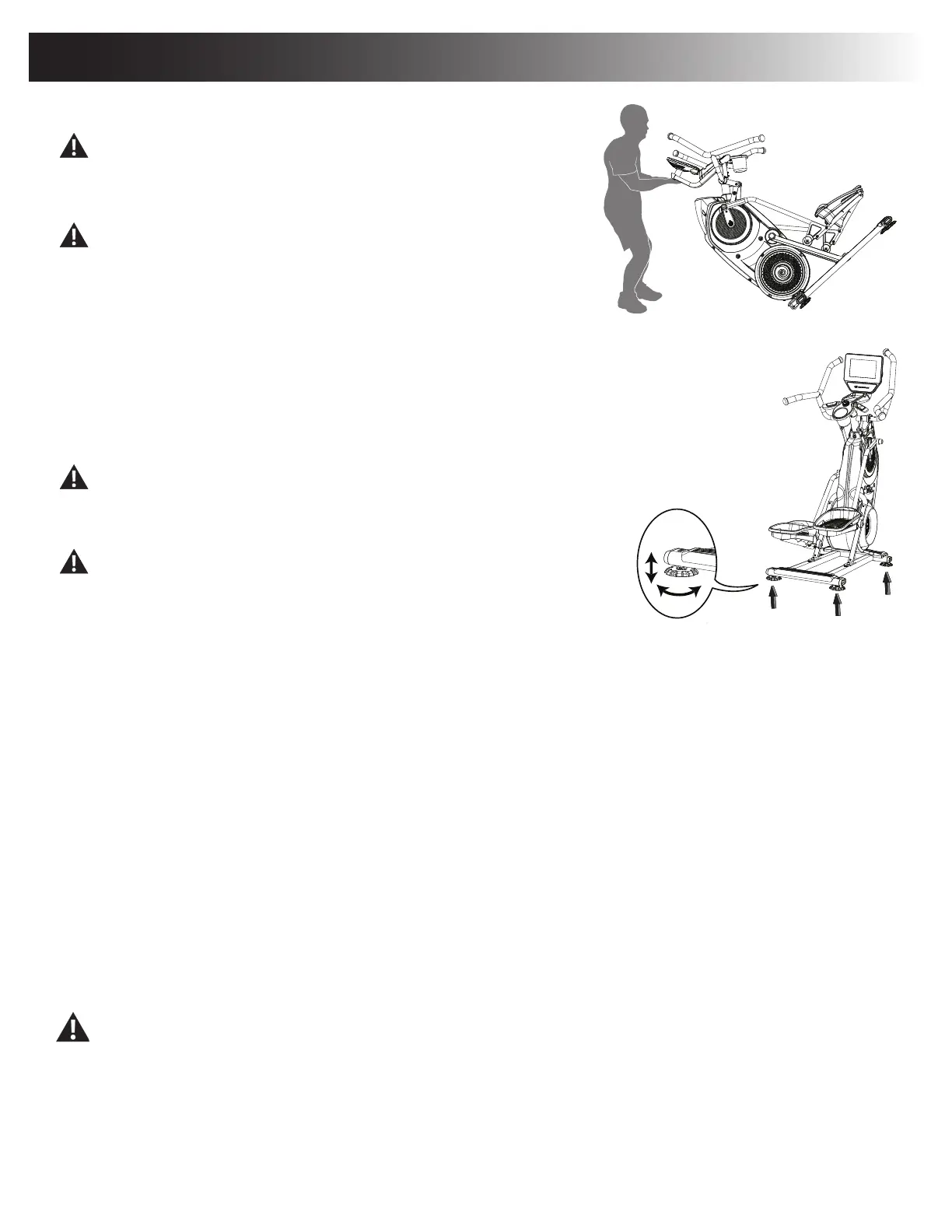The machine needs to be leveled if your workout area is uneven or if the Rail Assembly is slightly off the oor. To adjust:
