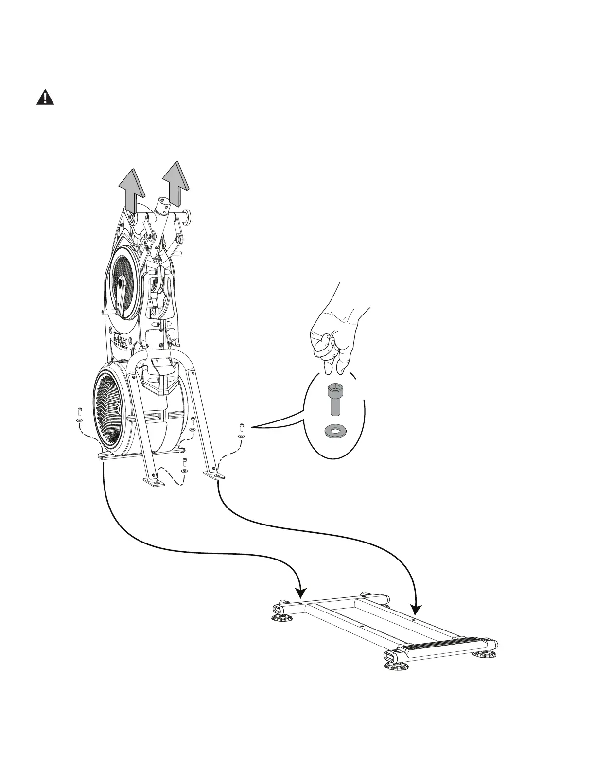 Some components of the machine can be heavy or awkward. Use a second person when doing the assembly steps involving these