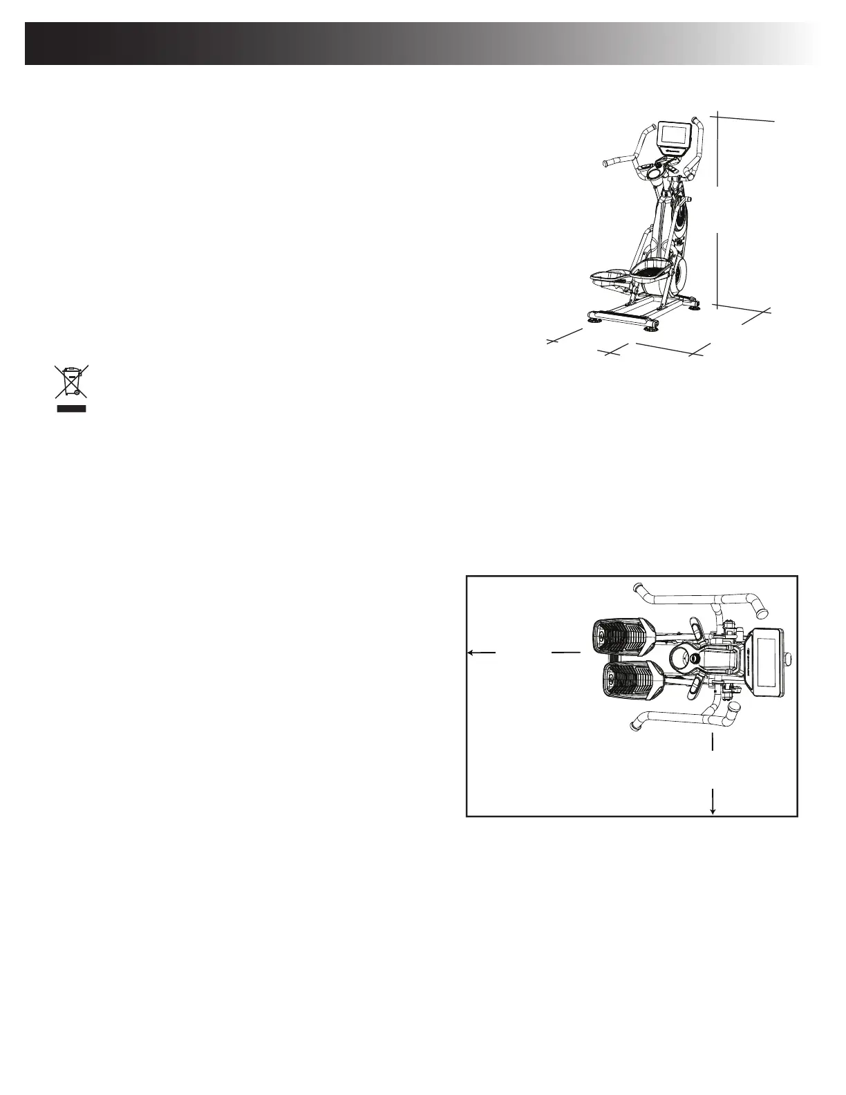 to the rear of the machine. Be sure that the workout space you are utilizing has adequate height clearance, taking into consideration the height of
