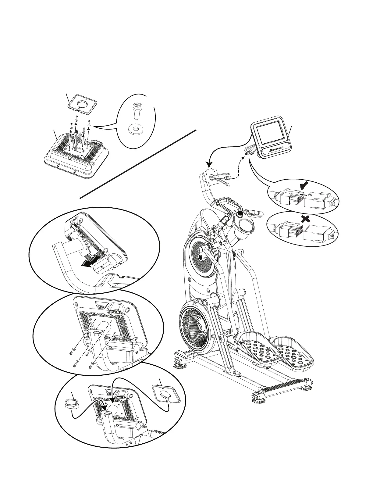 Place the Console onto the Static Handlebar. With the Excess of the Cables Pushed into the Static Han-