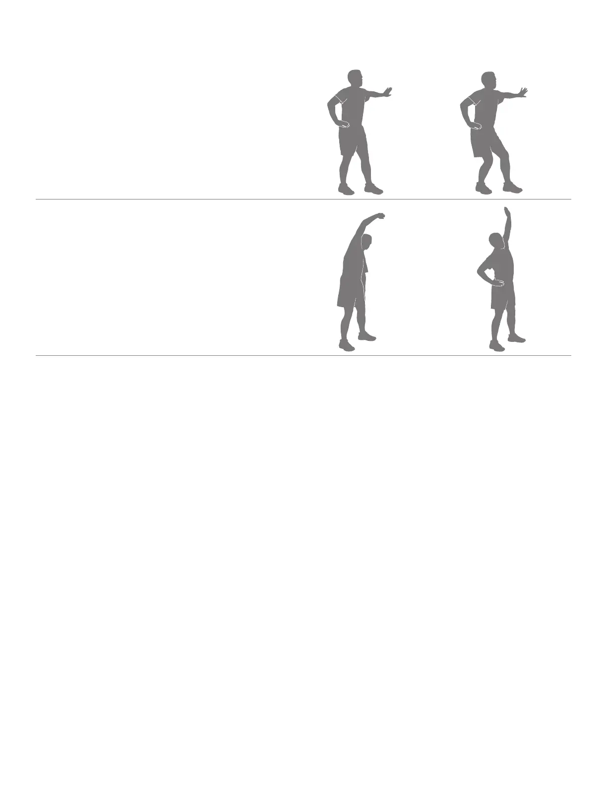 arms at the sides of the body. Reach with one hand above