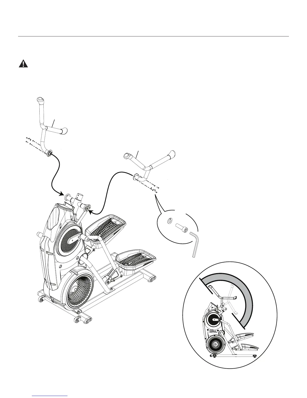 NOTICE: Be sure to attach the Upper Handlebars so they can be correctly grasped by a User when on the machine.