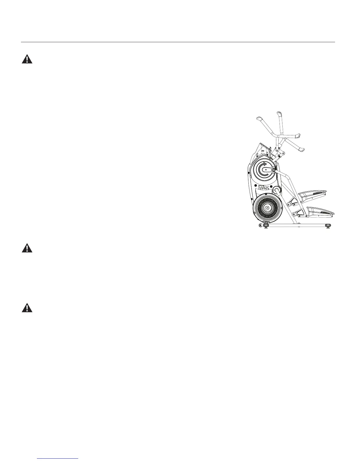 Be sure there is nothing under the Pedals or in the Air Resistance Fan before moving anything on the machine.