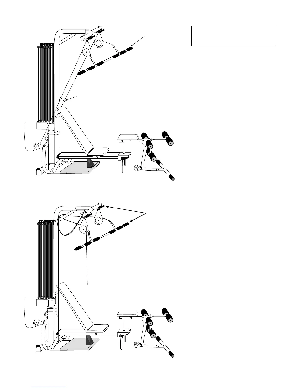 Slide Cables into the tube beneath the “T” piece when not using the lat tower.