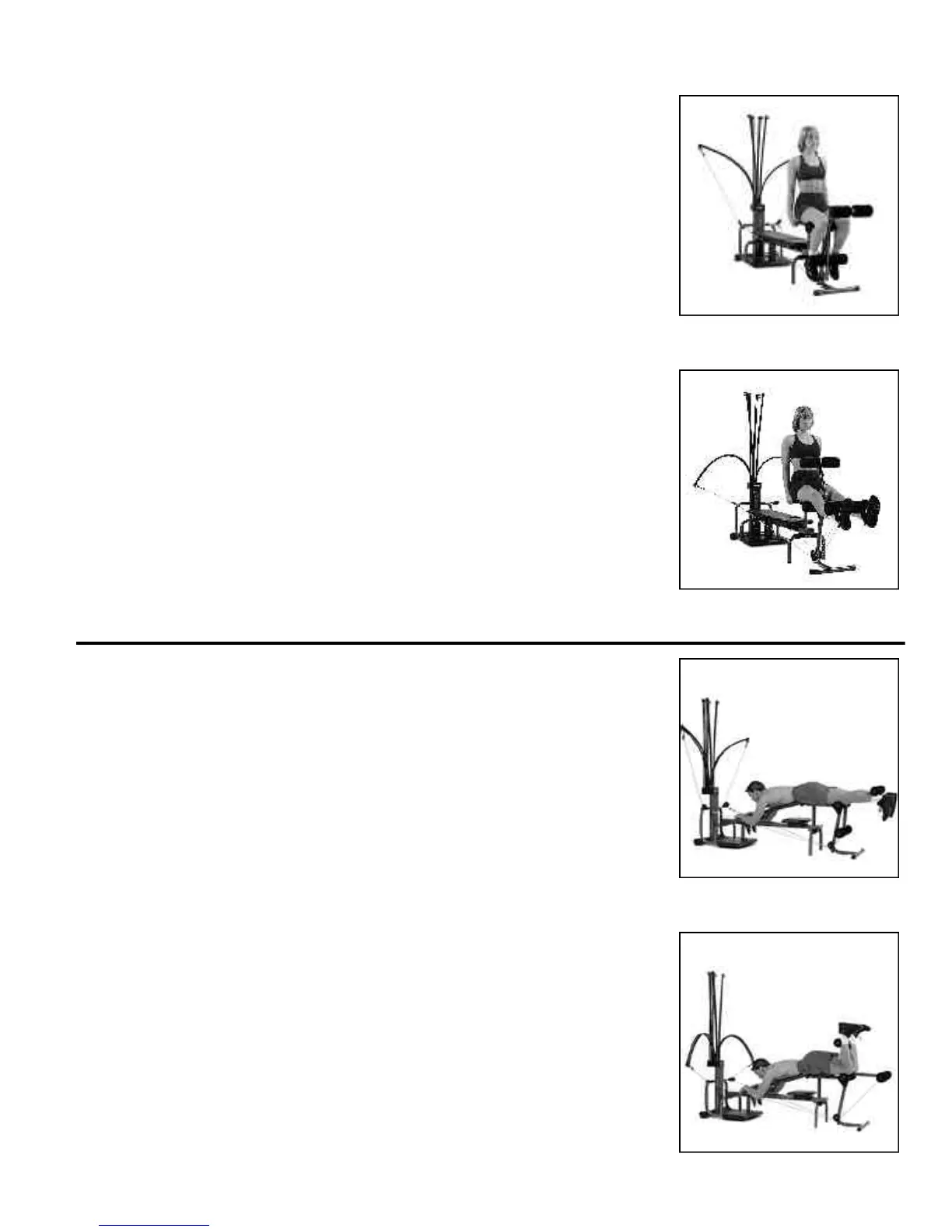 •With the bench attached to the seat of the leg unit, lie face down with your knees near the pivot