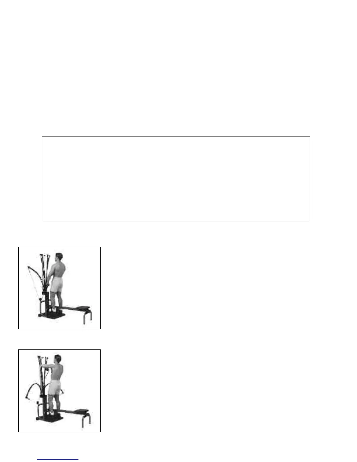 •Remove the bench and stand on the platform straddling the rail and facing the Power Rods.