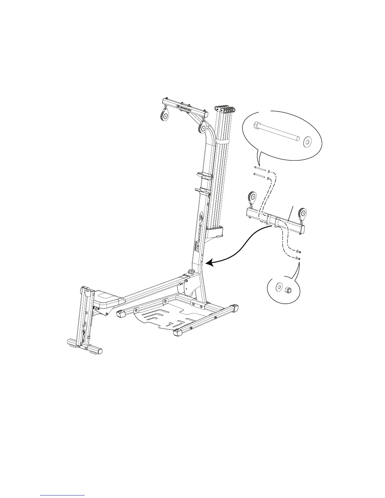 Note: Do not unwrap the cables from the pulleys until the machine is fully assembled.