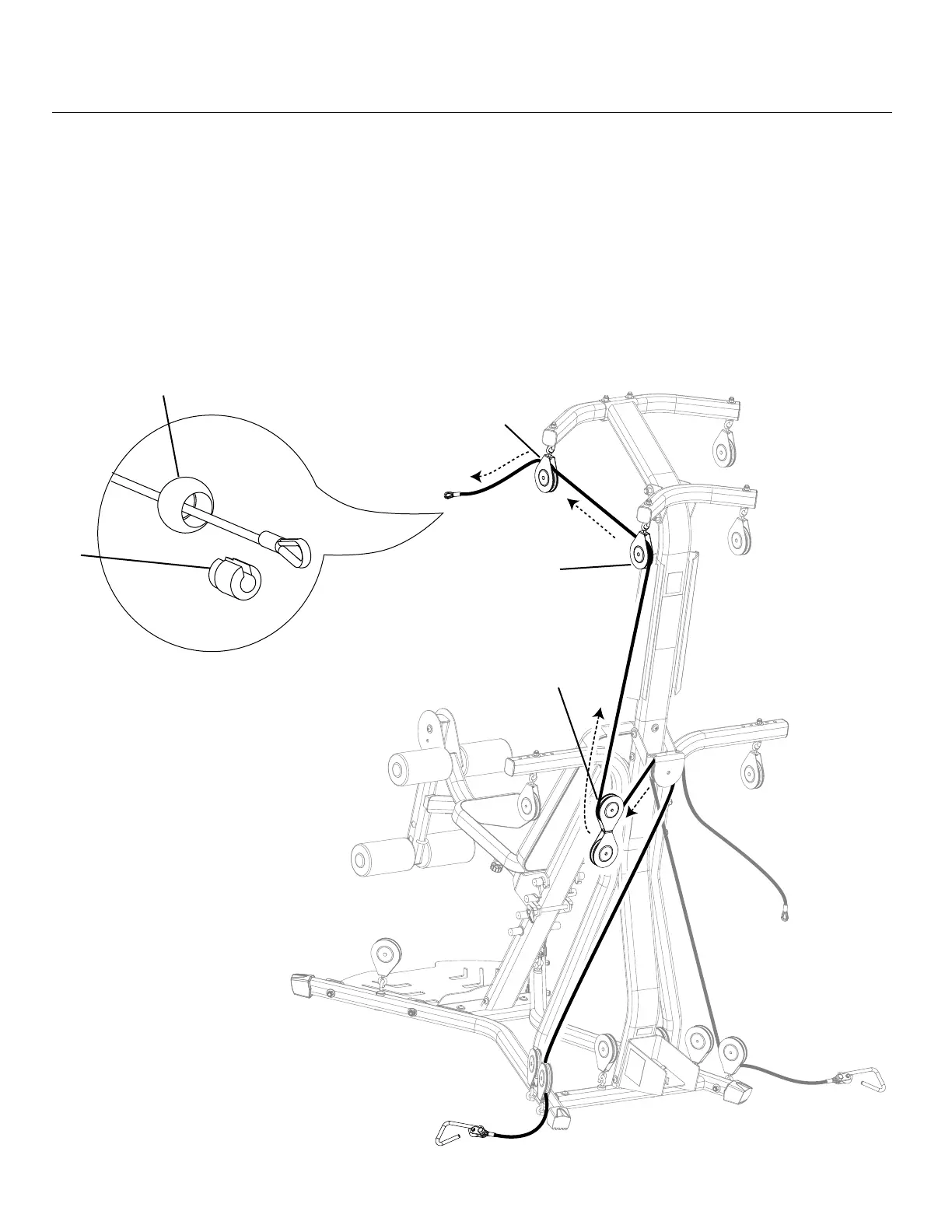 14-2 Pull the same cable through the Pulley on the Rear Lat Cross Bar (B) and then through the Pulley on the Front Lat Cross
