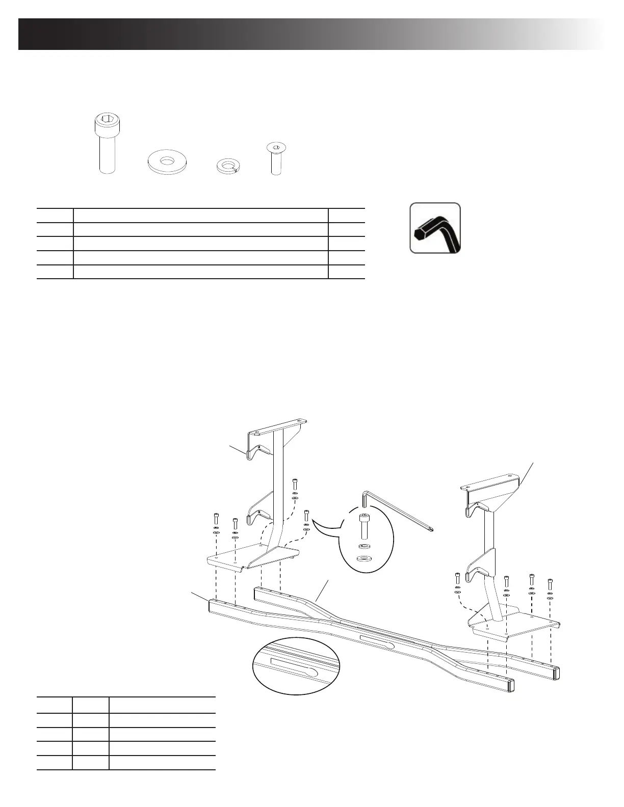 Note: Hardware for this step is on the 2080 Barbell with Curl Bar hardware card, not the 2080 Stand hardware card. Be sure to attach the Uprights to the bottom of the tubes so that