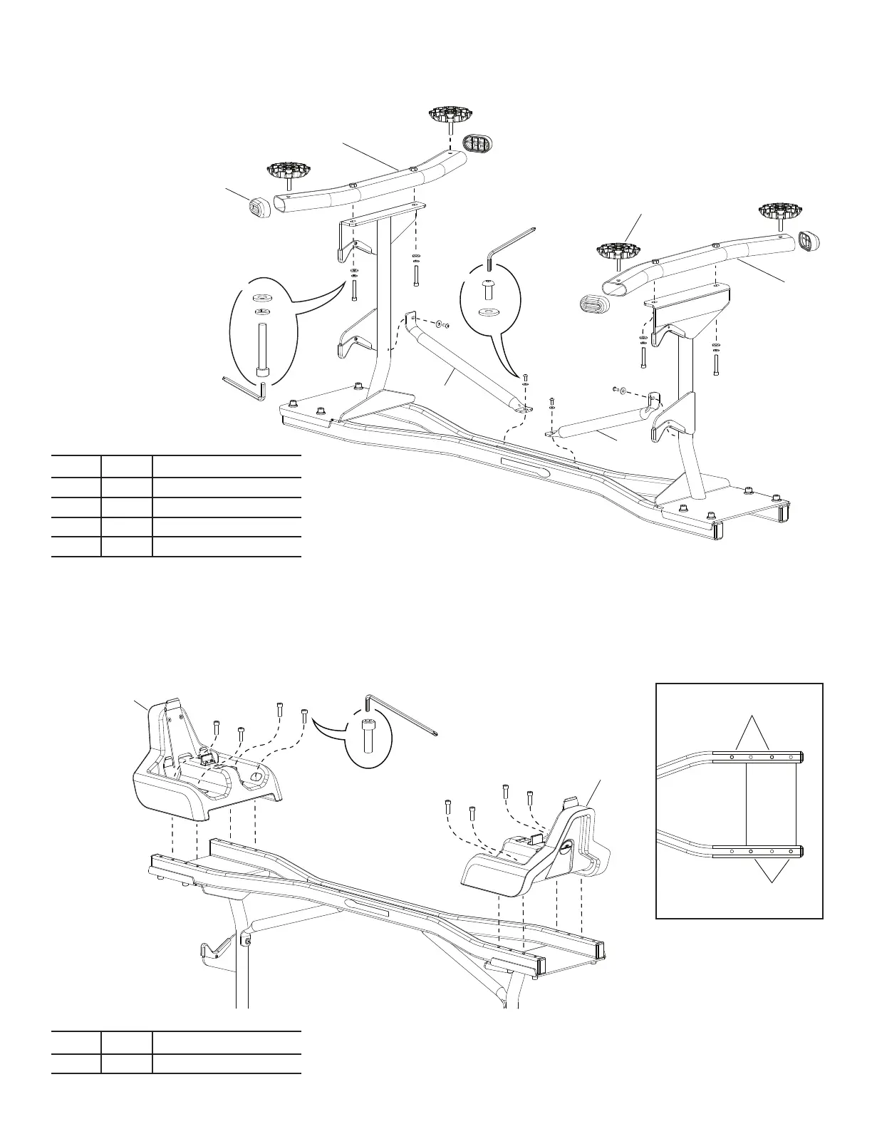NOTICE: Use the inner set of screw holes in the Base Tubes to t the 80-lb barbell conguration. If the Barbell will have the 40-lb Weight Upgrade (the 120-lb conguration), use the