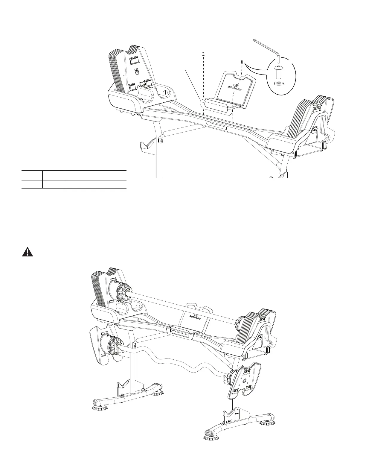 Barbell with Curl Bar. Fully tighten the hardware before you put the barbell/curl bar into the installed barbell base on the stand.