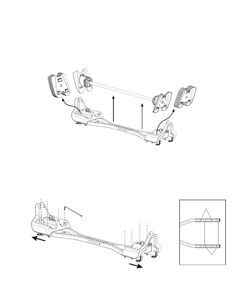 Note: Before removing the Barbell, set the adjustment knobs to the lowest weight selection (9.1 kg /20 lbs.).