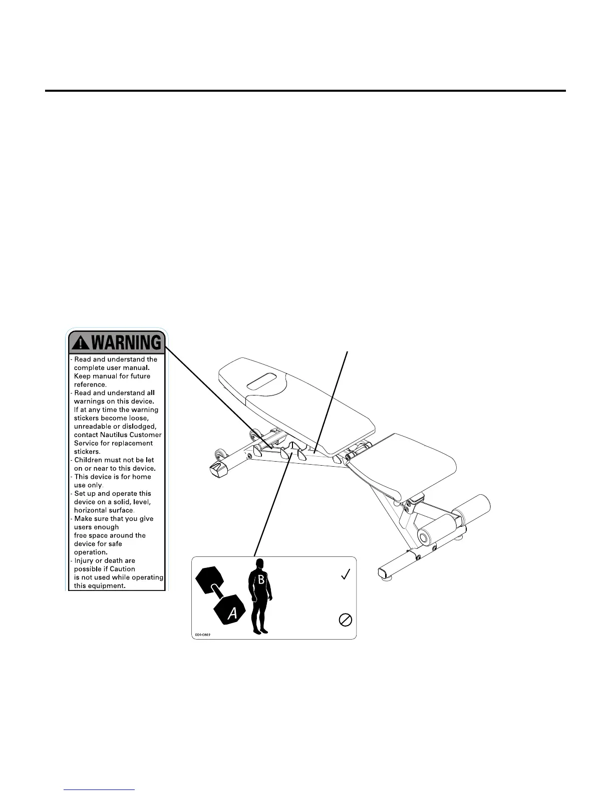 • Before each use, examine this equipment for loose parts or signs of wear. Contact Nautilus