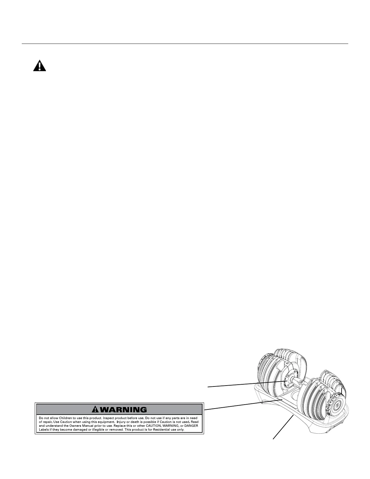 • Do not try to disassemble your Dumbbell handles, or base assembly. The product is not designed to be serviced by the
