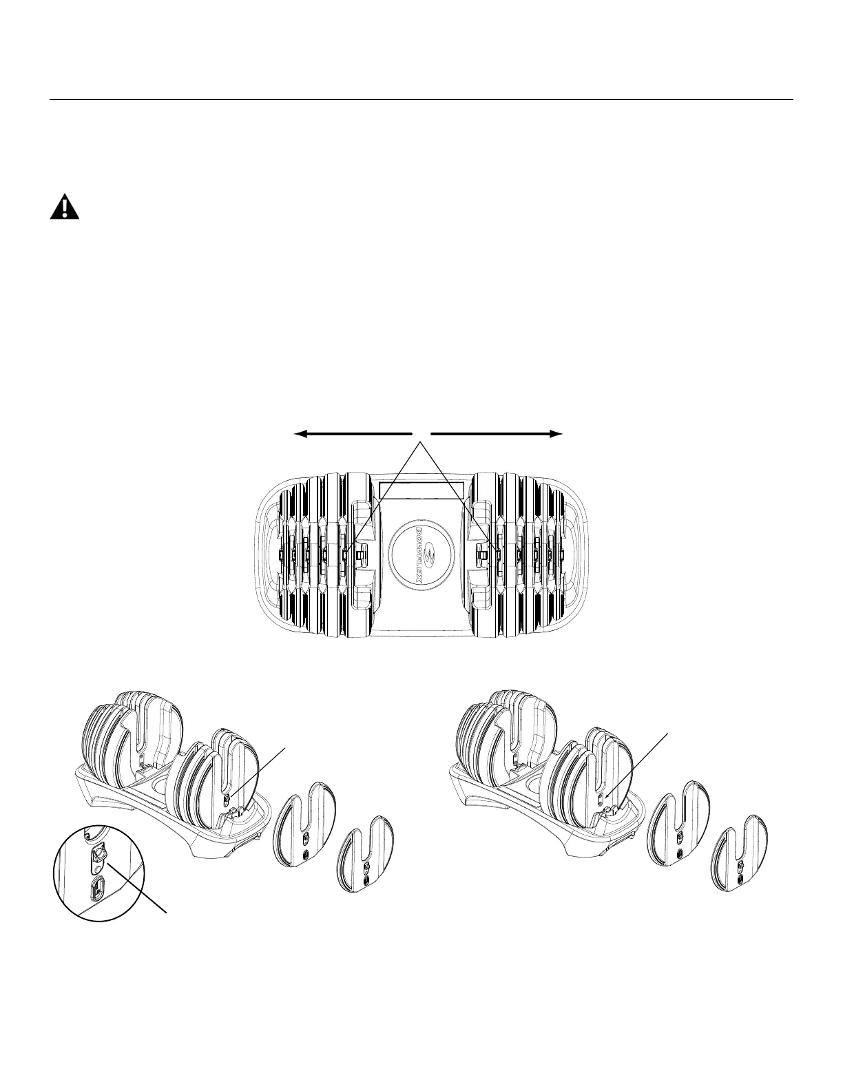 2. The mechanism will lock the dumbbell handle to the base if the adjustment knobs do not fully engage the weight plate selection. The