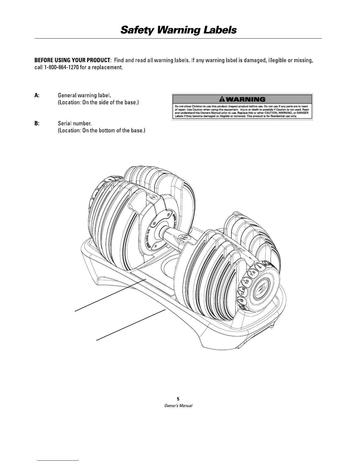 Bowflex SelectTech BD552 - Safety Warning Labels