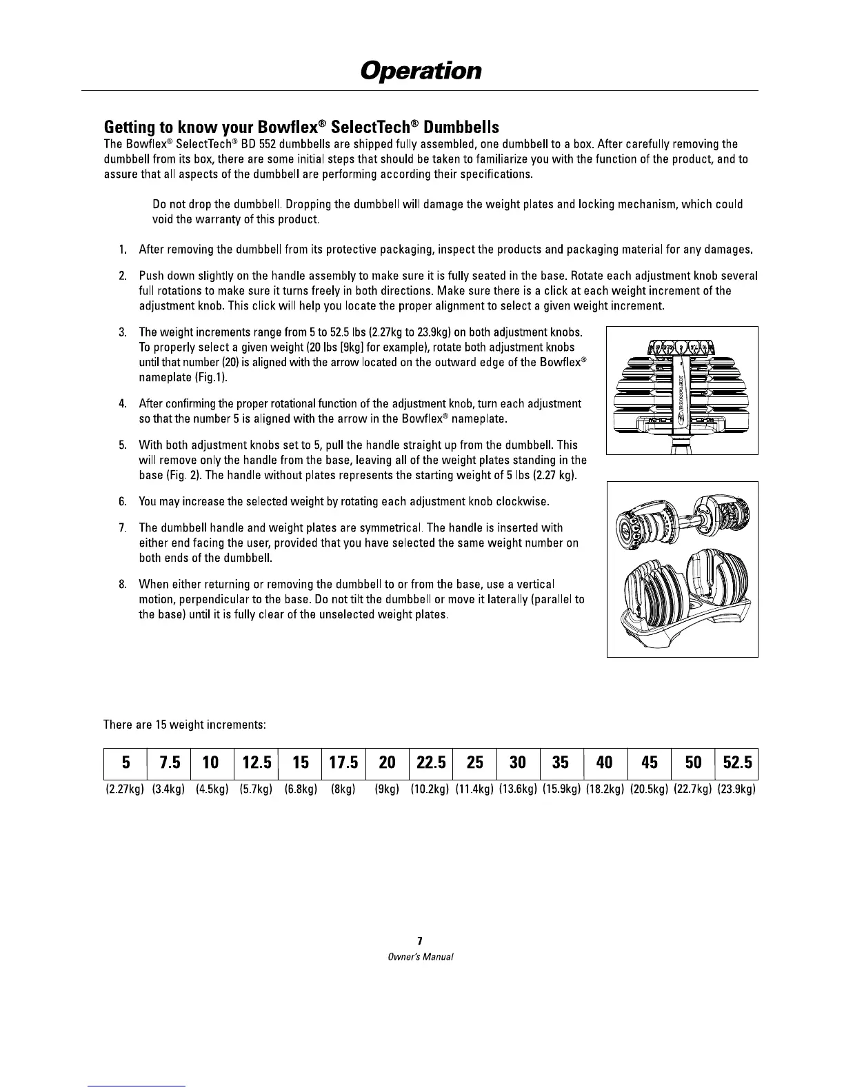 Bowflex SelectTech BD552 - Operation; Getting to Know Your Dumbbells