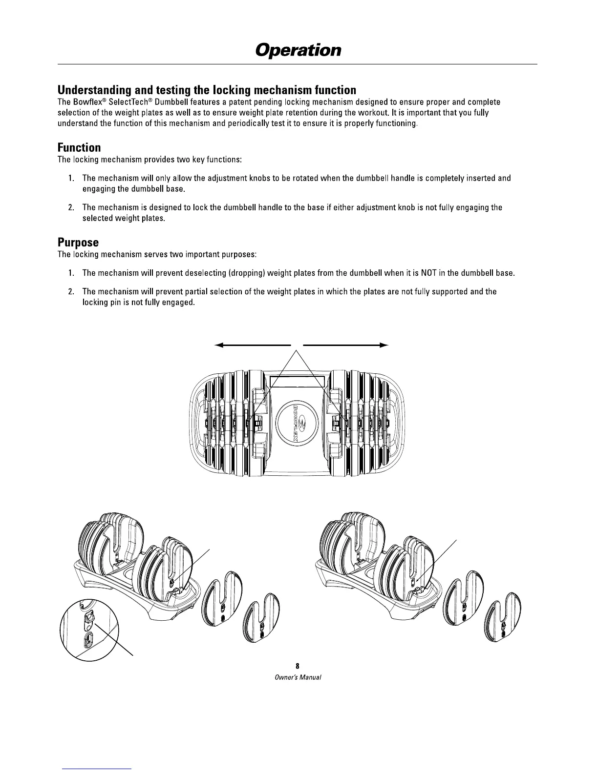 Bowflex SelectTech BD552 - Locking Mechanism Function