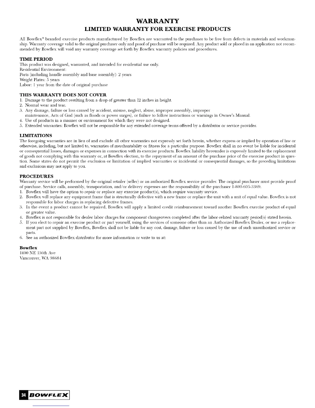 4. Bowflex is not responsible for dealer labor charges fox' component chmageovers completed after the labor-related warranty period(s) stated herein.
