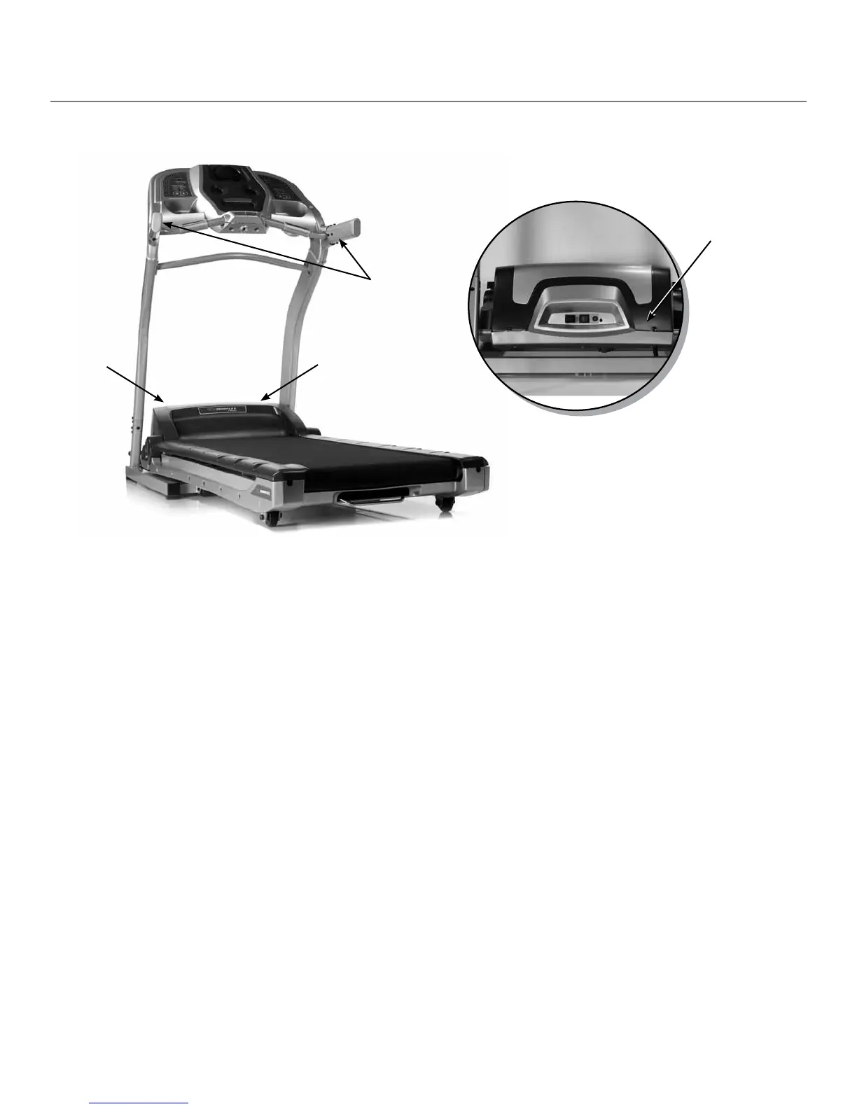 1. To avoid injury, stand on the side rails before starting treadmill.