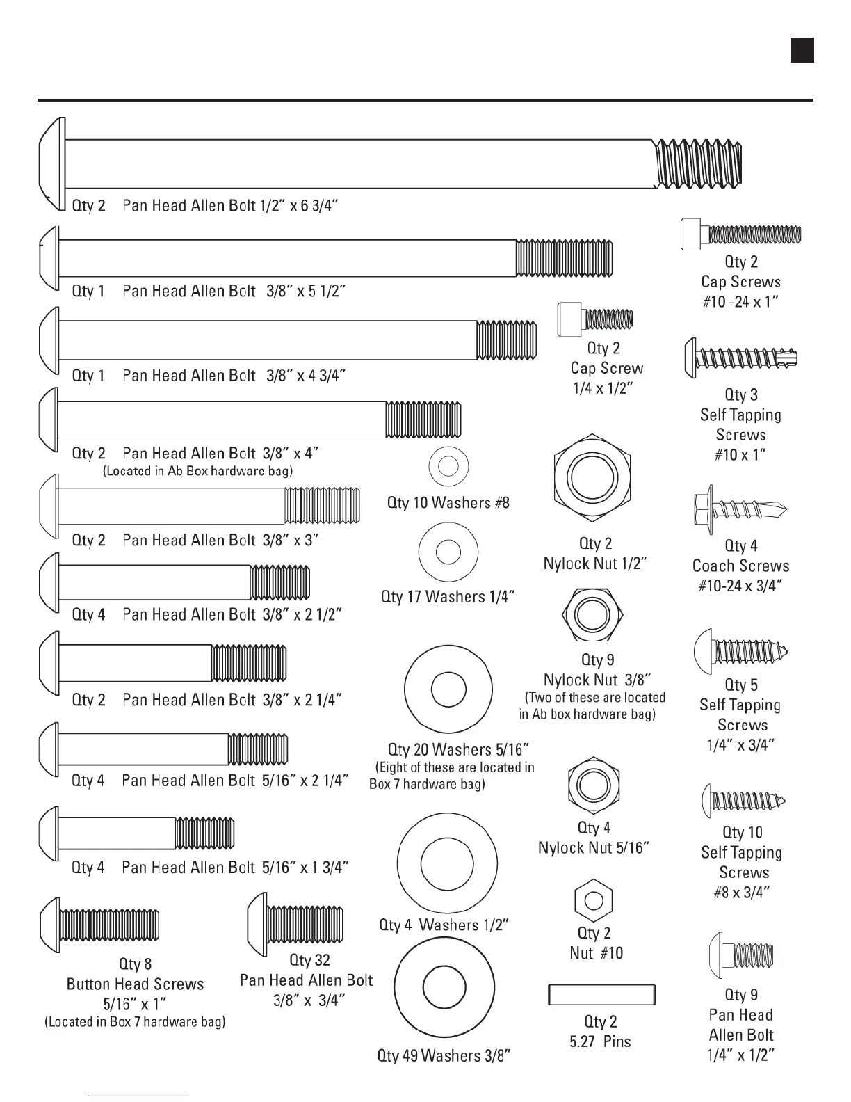 Hardware Chart (1:1 scale)