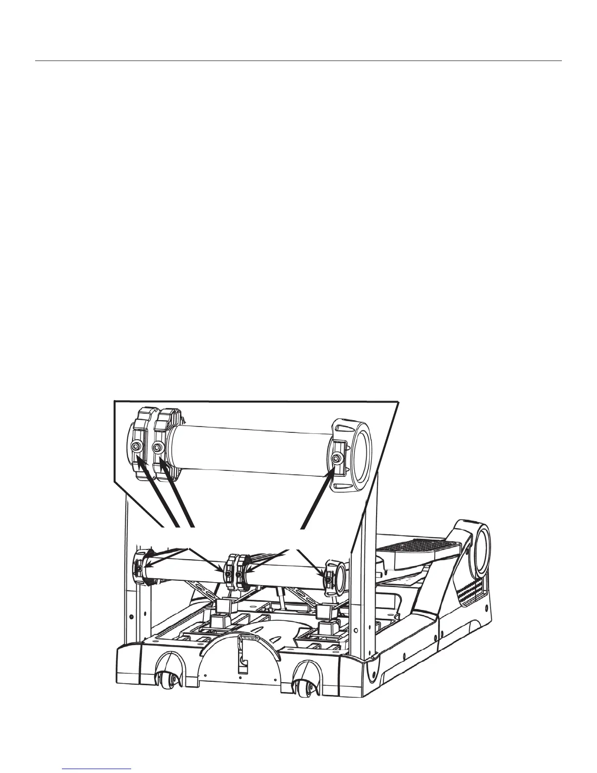 on each end of each front roller. If the belt is tracking too far to the right, turn clockwise to tighten the right adjustment bolt