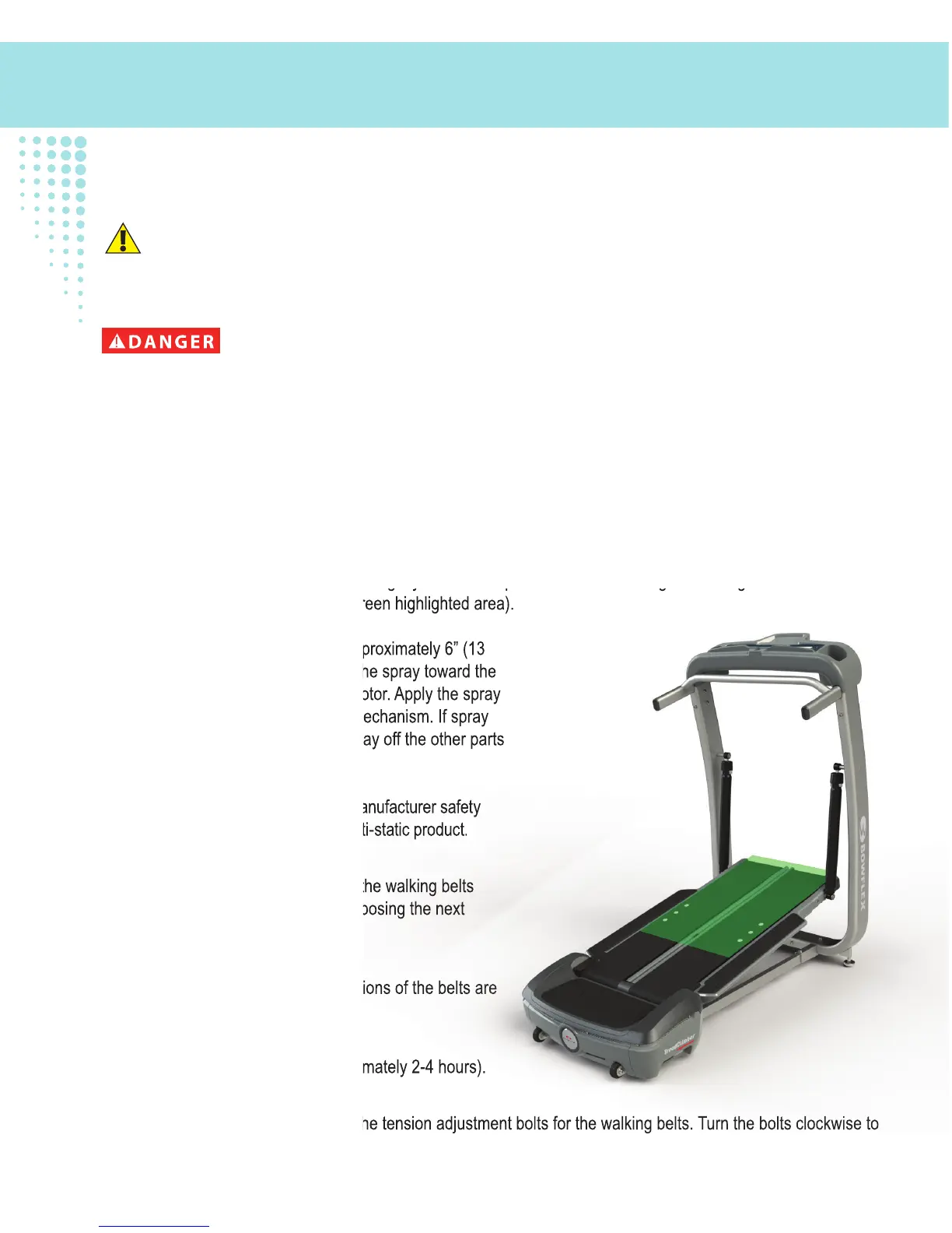 3. Carefully apply the anti-static spray to lightly cover the top surface of the walking belts along the front of the