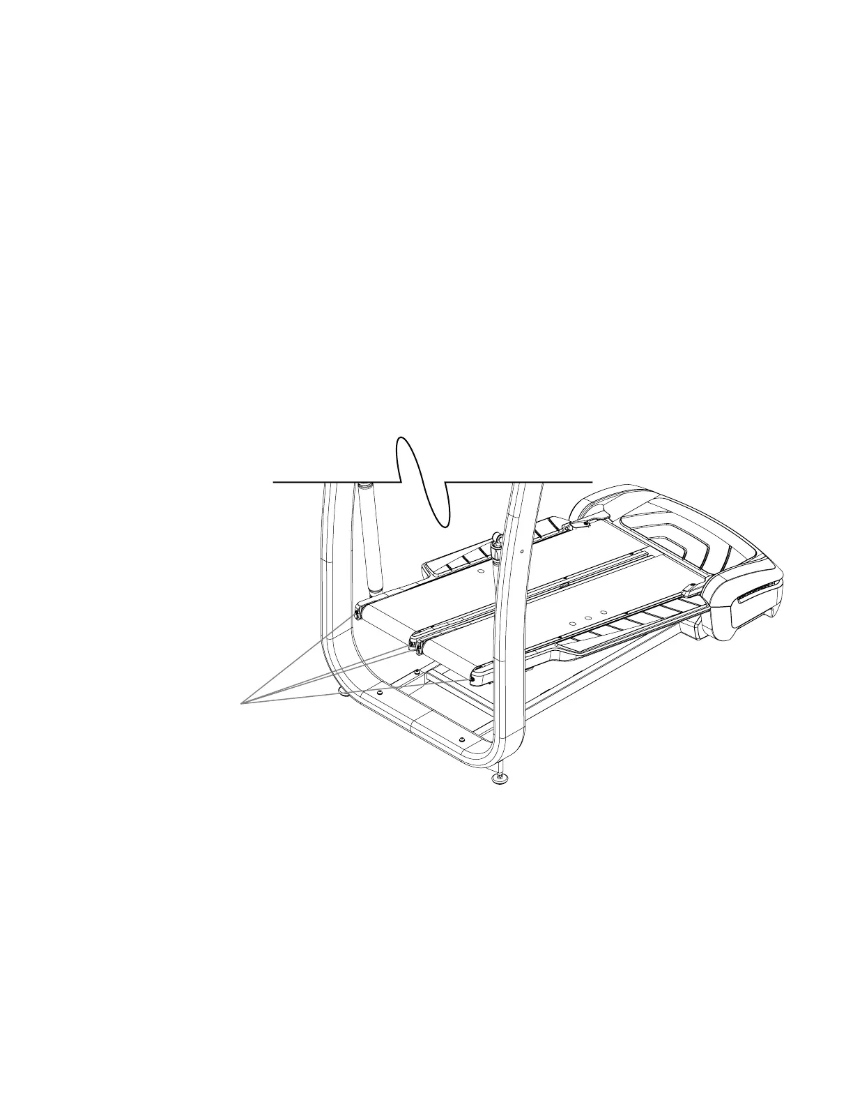 Adjusting the Walking Belts –:KLOHRSHUDWLQJWKHPDFKLQHQRWLFHZKHUHWKHEHOWVUXQRQHDFK7UHDGOH7KH:DONLQJ%HOW$GMXVWPHQW%ROWVDUHRQ
