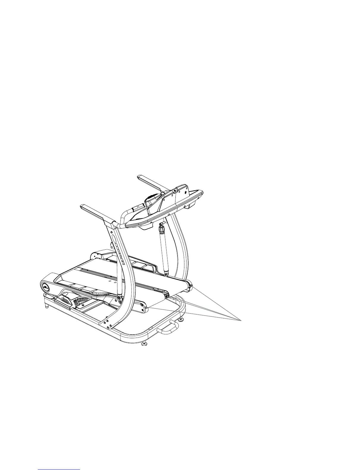 Adjusting the Walking Belts –:KLOHRSHUDWLQJWKHPDFKLQHQRWLFHZKHUHWKHEHOWVUXQRQHDFK7UHDGOH7KH:DONLQJ%HOW$GMXVWPHQW%ROWVDUHRQ