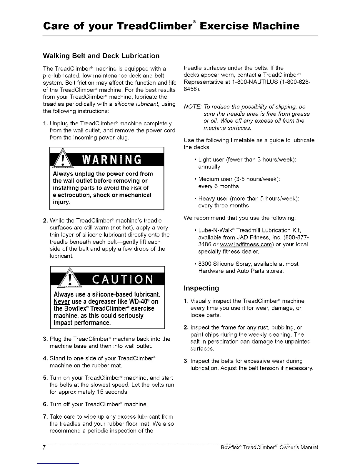 7 Bowflex ®TreadClimber _ Owner's Manual