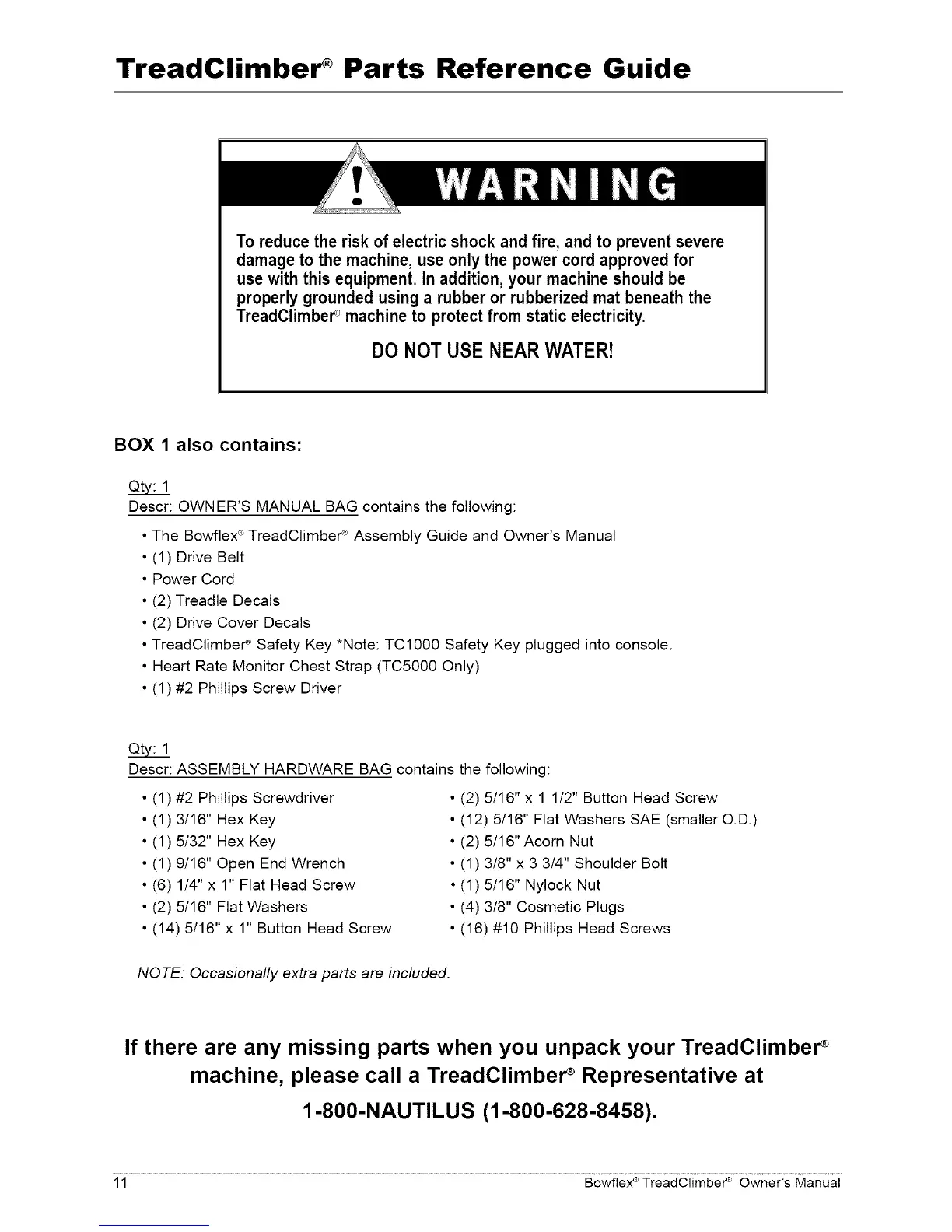 If there are any missing parts when you unpack your TreadClimber _