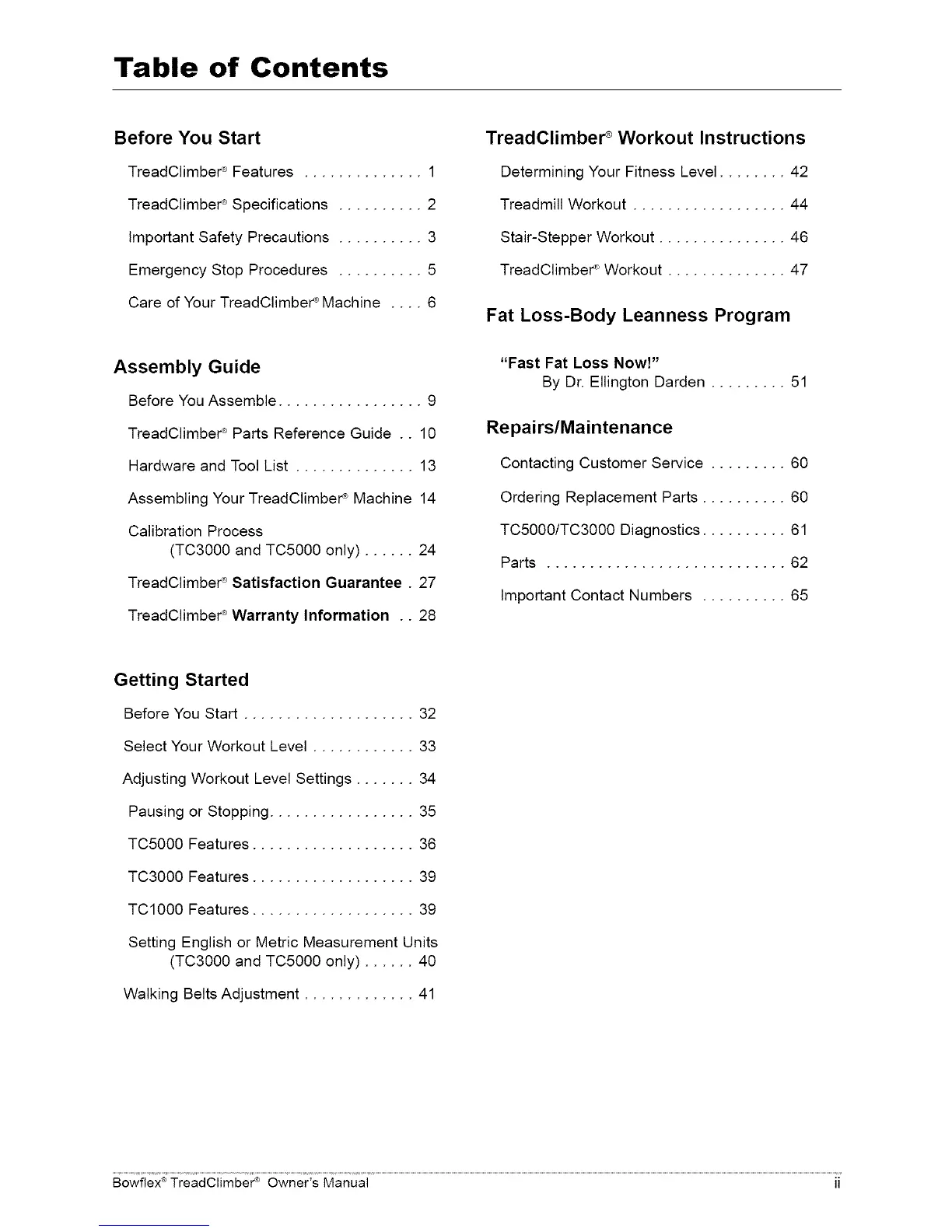 TreadClimbeP Warranty Information .. 28