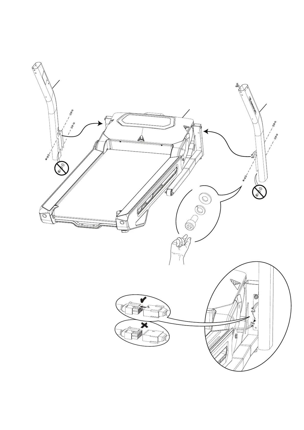 1. Attach the Uprights to the Base Assembly, and then Connect the Console Cables from the Base