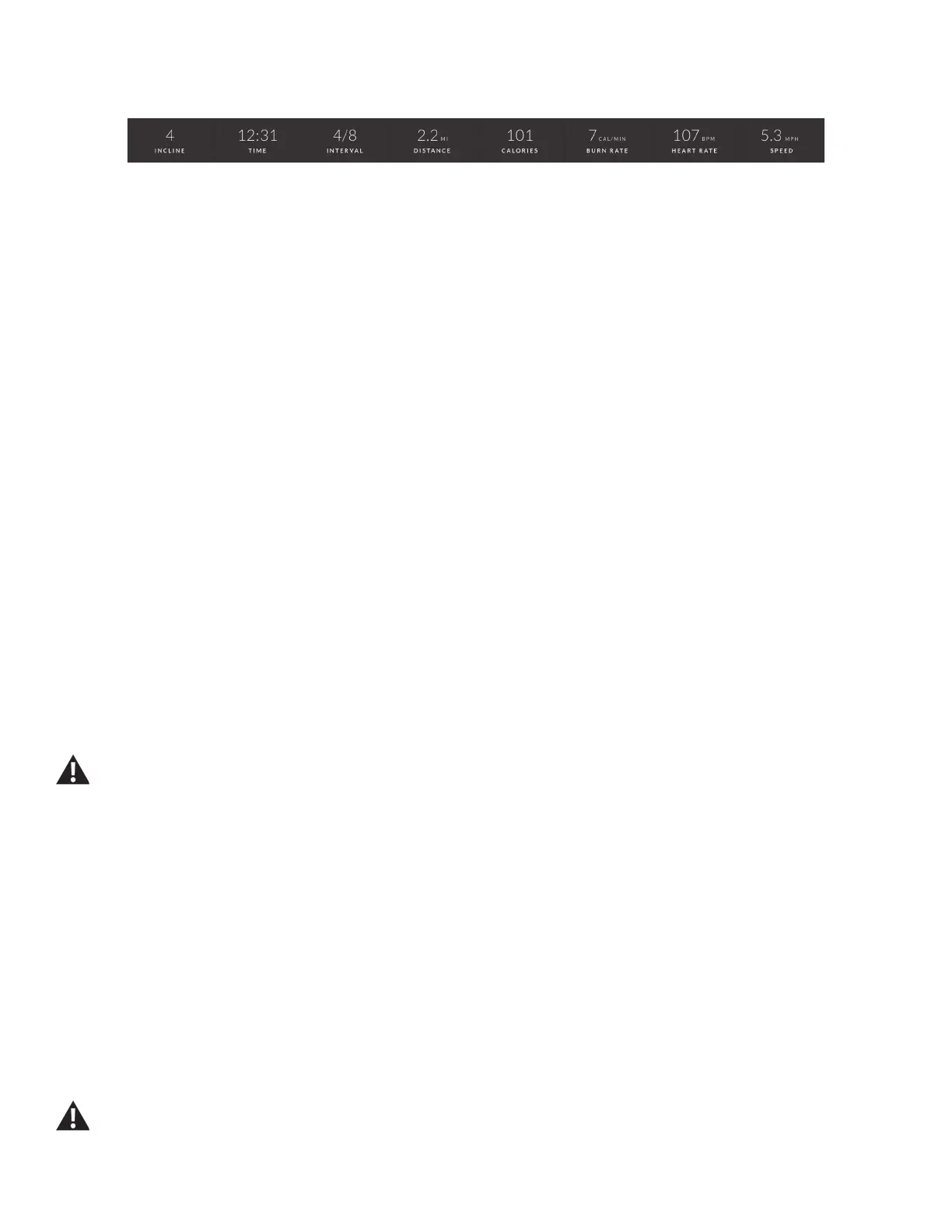 speed and incline level. As either of those values increase, the Burn Rate will increase.